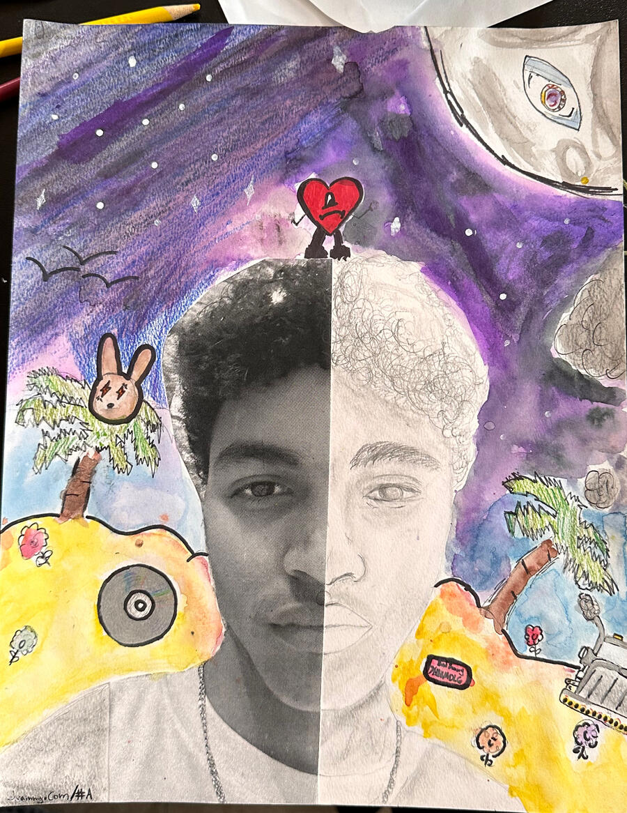 "UVST 002" is a remix of my initial graffiti creation, which was crafted using watercolors to showcase Bad Bunny's most notable albums. This artwork was a labor of love that required several days to complete.